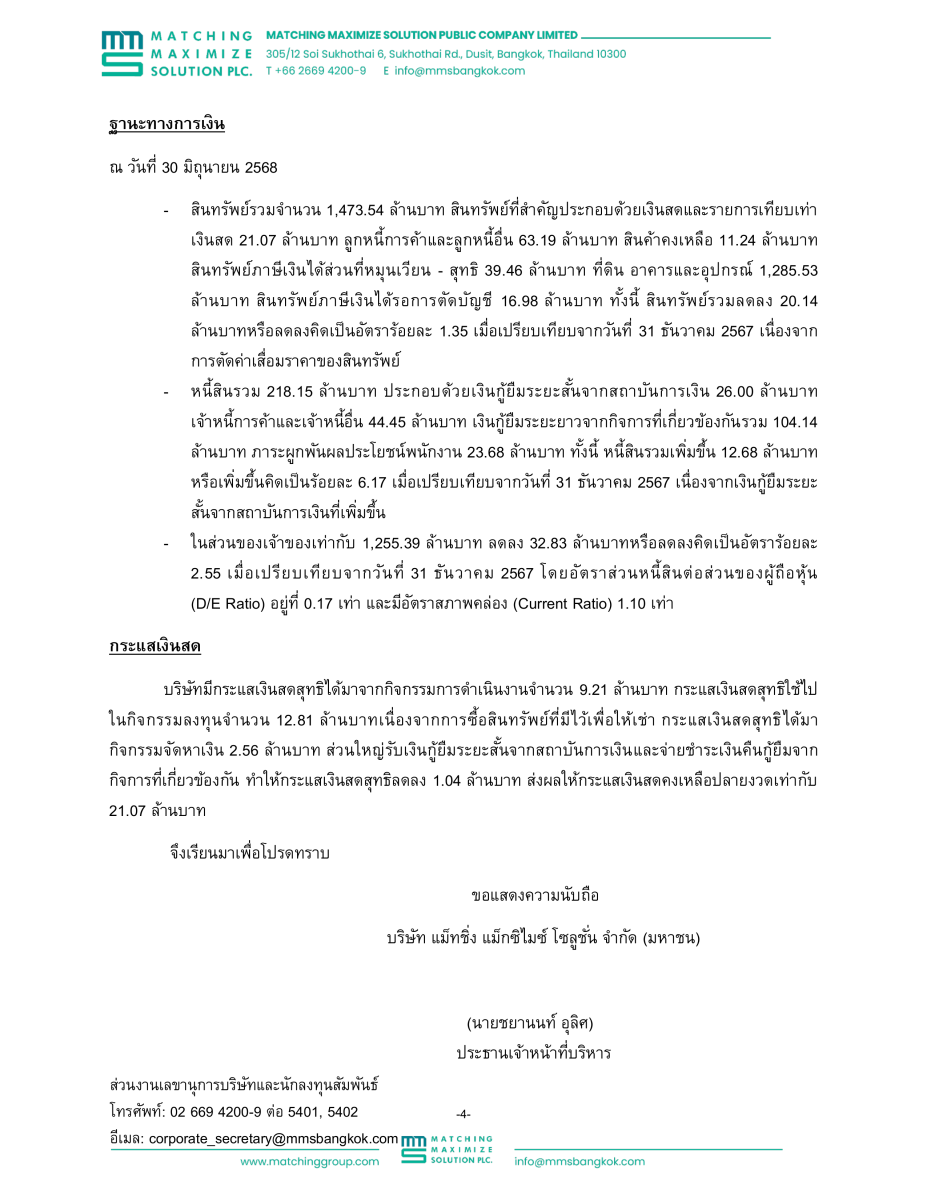 คำอธิบายและวิเคราะห์ของฝ่ายจัดการ ไตรมาส 2/2568
