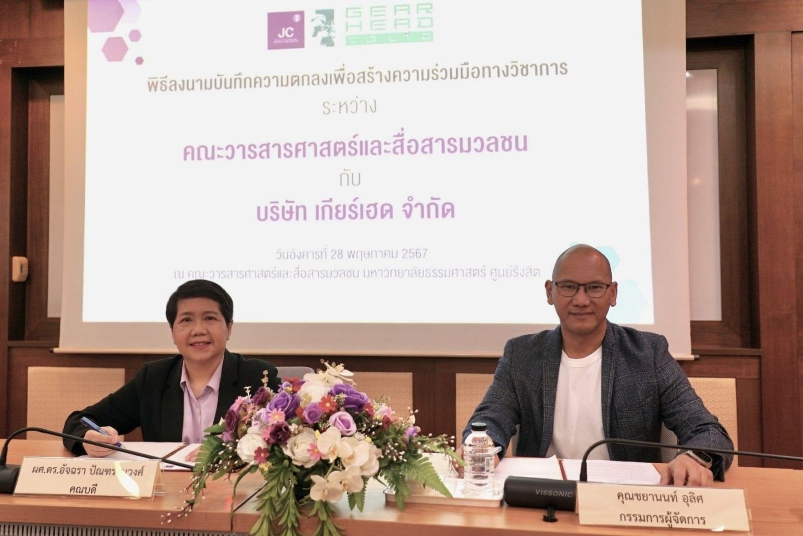 On May 28, 2024, Mr. Chayanont Ulit, Managing Director of Gear Head Thailand and Assistant. Prof. Adchara Panthanuwong, Ph.D., Dean of the Faculty of Journalism and Mass Communication, Thammasat University, signed a memorandum of understanding (MOU) to collaborate on various projects and activities, promote academic work, and develop professional filming crews. The collaboration also includes the use of modern digital lighting technology for the film industry. Faculty members from the Faculty of Journalism and Mass Communication attended the signing ceremony.