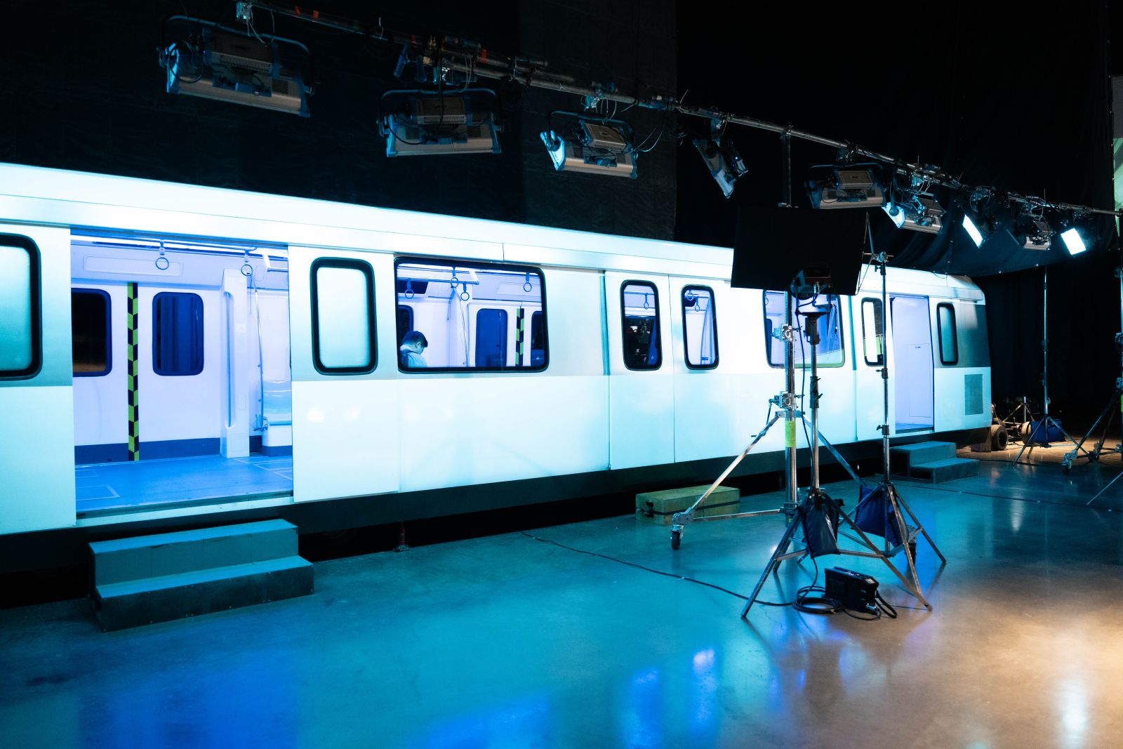 A lighting demonstration showing a film shoot on a train to simulate movement
