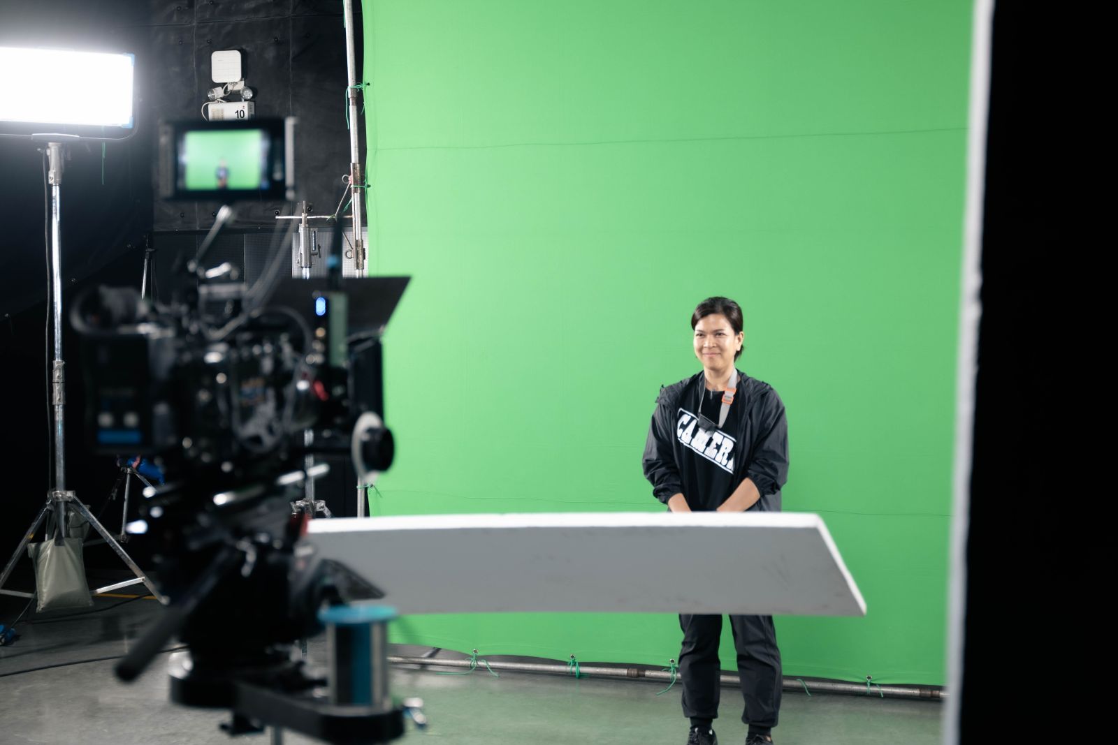 A shoot using a green screen as a background with Q take for initial image matching and color grading