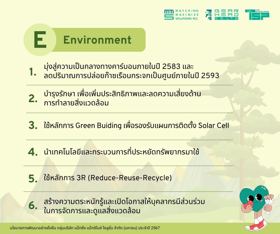 เราเข้าใจความสำคัญของการดำเนินธุรกิจอย่างยั่งยืน และมุ่งมั่นในการกำหนดเป้าหมายพัฒนาที่ยั่งยืน โดยการบูรณาการหลักการ ESG (Environmental, Social, and Governance) และการนำเทคโนโลยีดิจิทัล (Digital Transformation) เข้าสู่ทุกมิติของธุรกิจของเรา